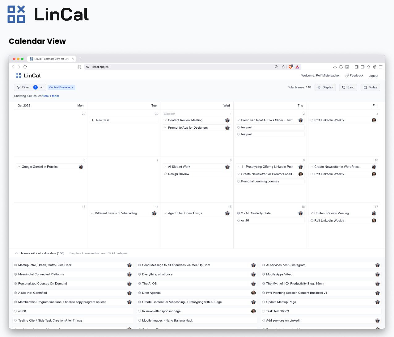 I’ve built dozens of applications: dashboards, productivity tools, content workflows, internal business tools. The best known is LinCal, a calendar view for Linear that started as a single prompt and is now an official Linear integration used by 150+ teams worldwide.
