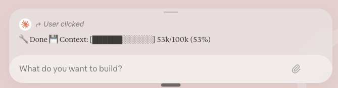 Claude also shows you how much of the context window (the AI’s working memory) you’ve used while building the prototype. This matters because it gives you a sense of complexity and helps you understand when you might be pushing the limits.
