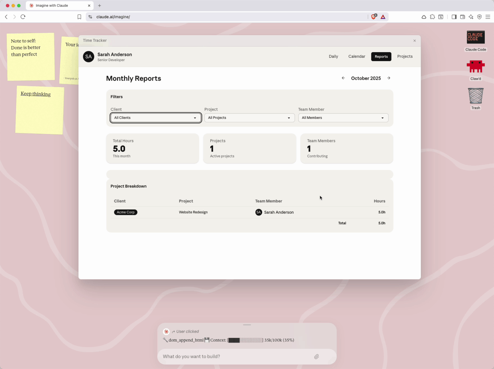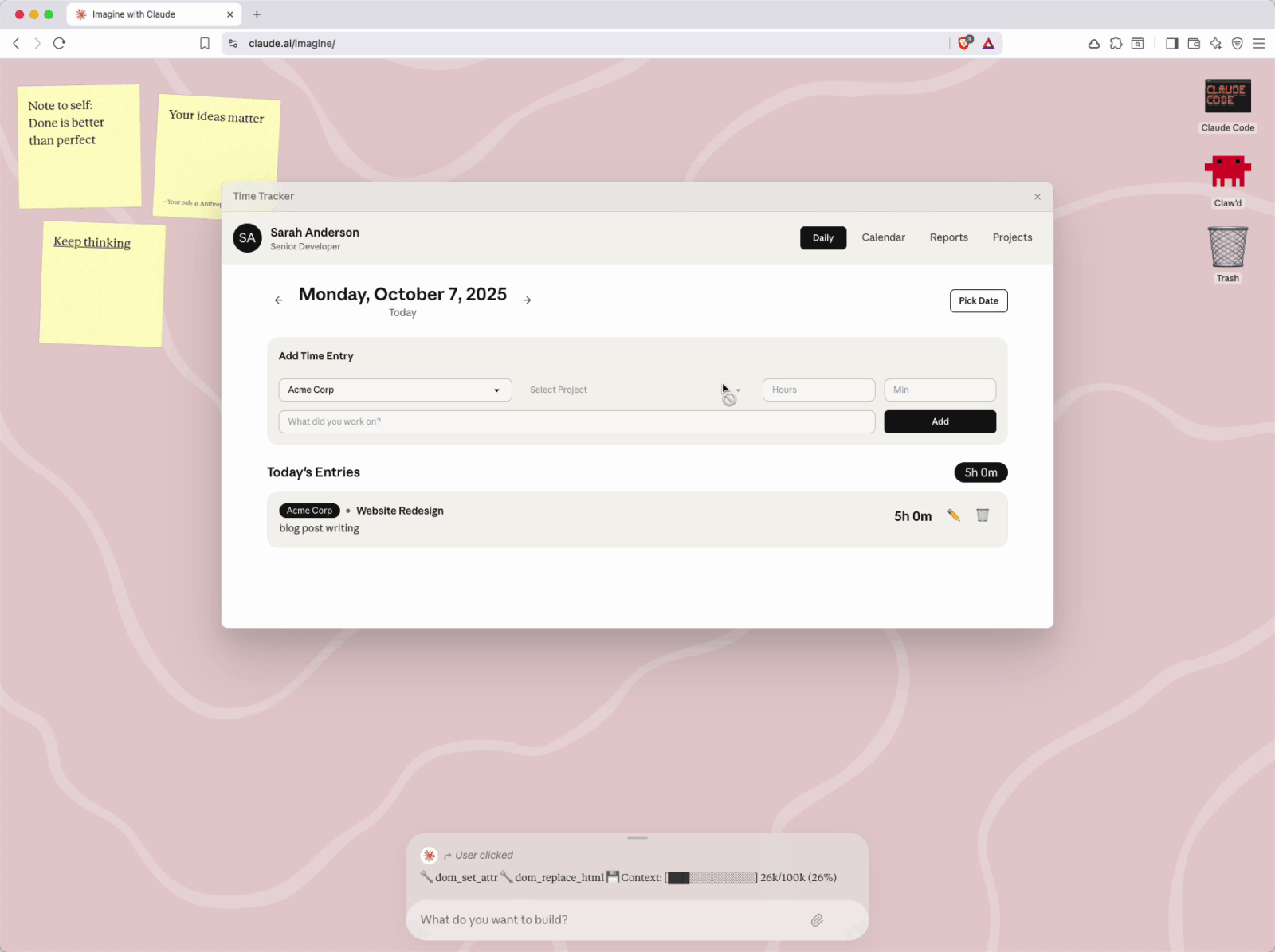I decided to test Claude Imagine by recreating a time management app I pay for and use daily. Nothing fancy, just the essentials: