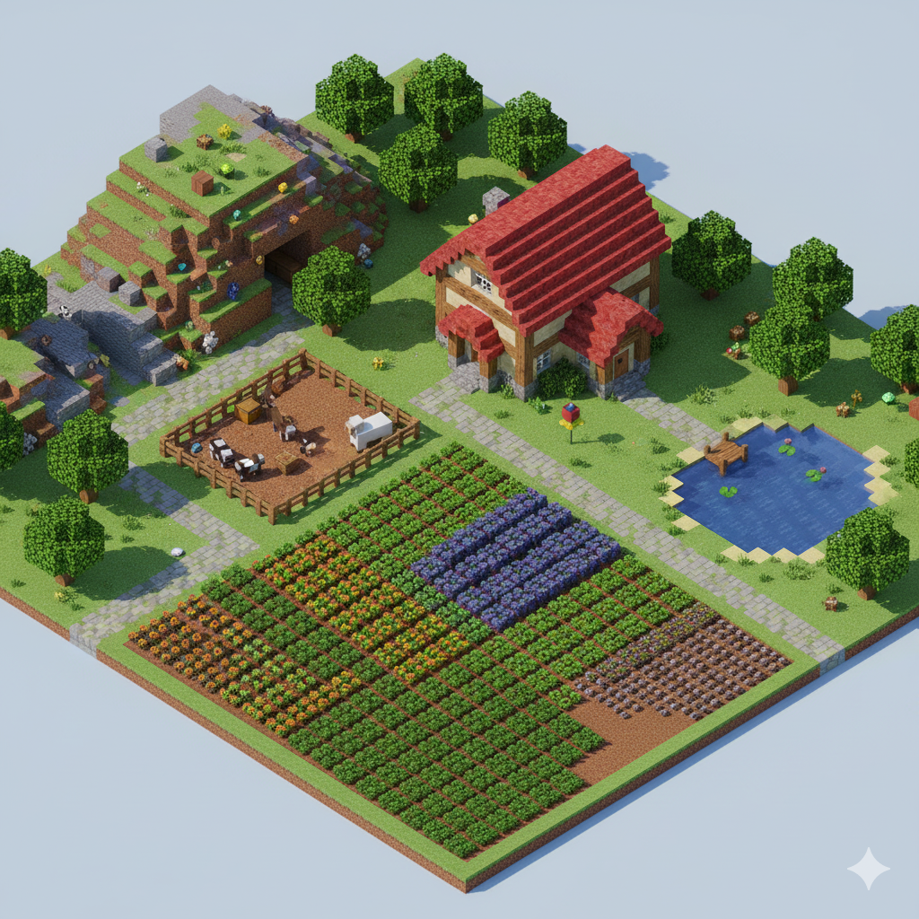 “Create a Stardew farm that replicates Minecraft gameplay.”