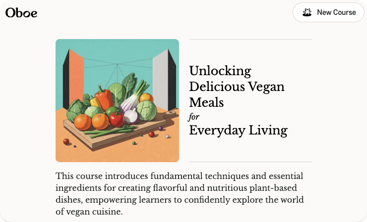 Oboe turns any topic into a learning journey. Type in what you want to learn say, “Bonsai care” or “Vergan cooking fundamentals” and it generates a structured course with different materials, including quizzes. The interface offers multiple learning styles: listen, read, or interact.