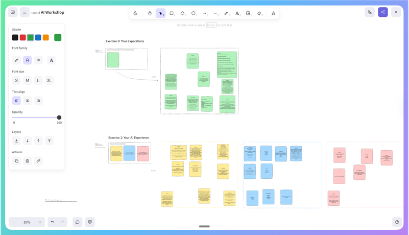 Whiteboard apps like Miro and Mural have become increasingly feature-rich and quite expensive, which can make them complicated to use in workshops. You end up explaining the tools more than running the actual exercise.