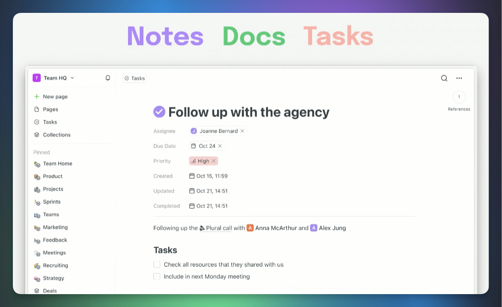 Saga is an app for organising your notes, docs, and tasks. Sounds like Notion? It is similar, just leaner. The free plan supports up to 3 members with unlimited pages and tasks, which makes it especially appealing for small teams. It also connects with Google Drive and Linear, keeping your workflow in sync.