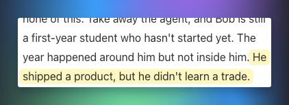 The piece argues that this is where something quietly breaks. By skipping the grunt work, you skip the process that builds intuition. You never develop the ability to spot when something is off, or sense a wrong turn before it becomes a problem. The results look the same. The thinking isn’t.